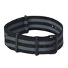 The original specification of what we today term "the NATO strap" was laid down by the UK Ministry of Defence and was called Defence Standard 66-47 Issue 2 Publication Date 30 March 2001. The specifications which preceded this were Def Stan 66-47 Issue 1 dated 13 November 1992 and two earlier standards, Def Stan 66-15 (Part 1) Issue 1 – Strap (Nylon) dated 30 November 1973 and Def Stan 66-15 (Part 2) Issue 1 – Strap (Leather/Nylon) dated 31 January 1974. The current specification data-sheet can be downloaded at NATO Strap Current Spec although this specification is not totally set in stone it is pretty much still the exact design that is specified when we make straps although most bulk contracts insist on them being stitched around the buckles.