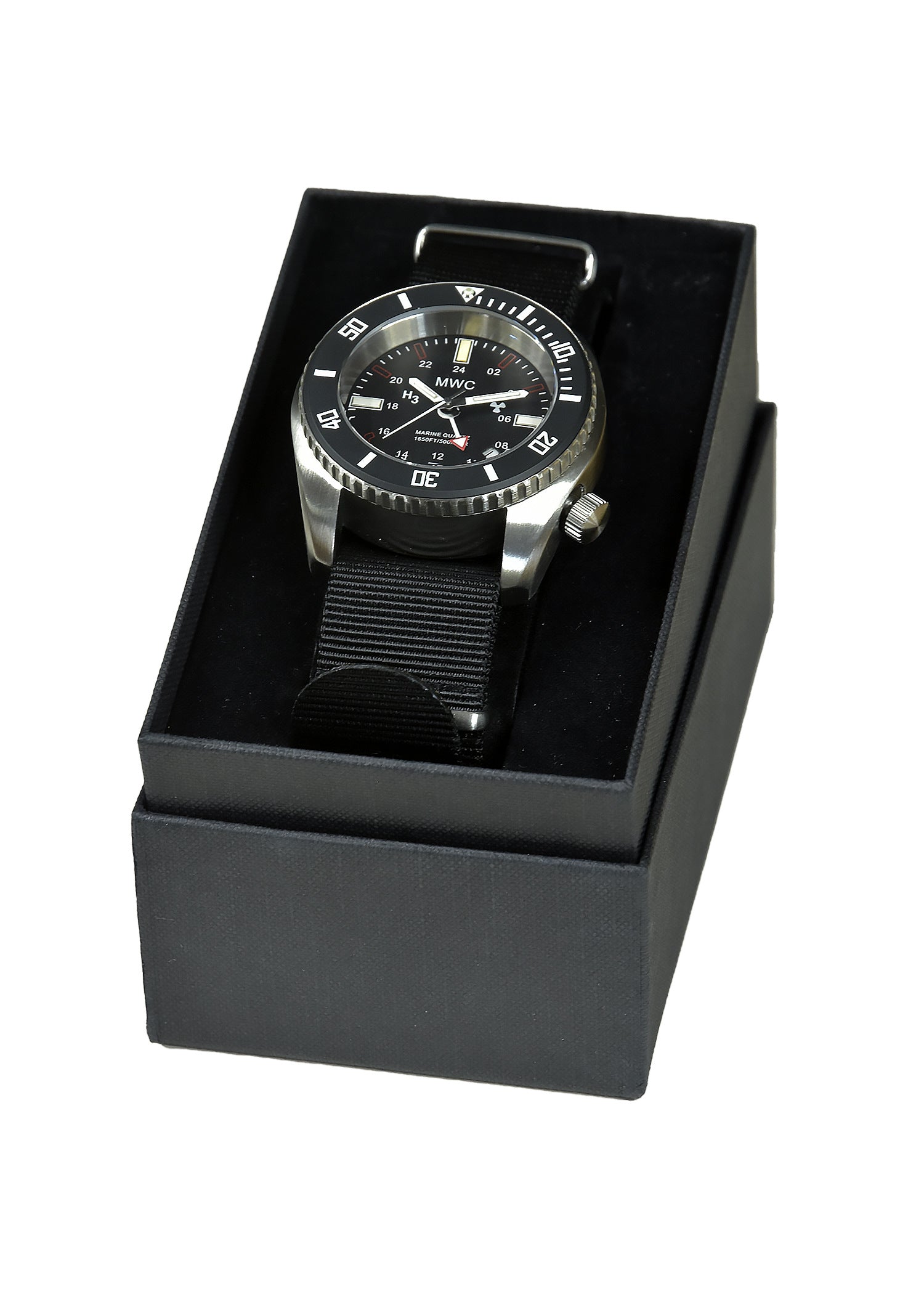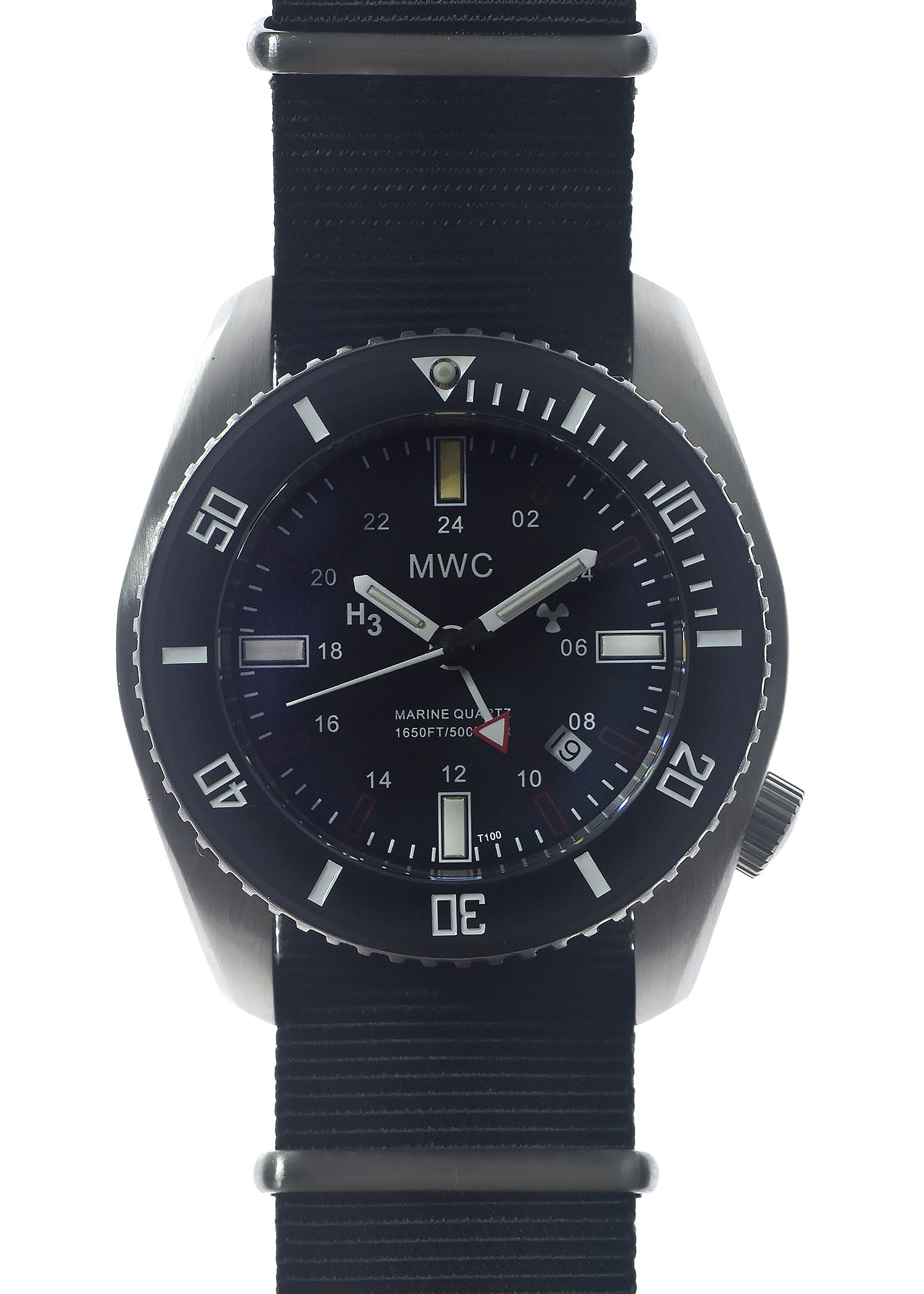 Die MWC "Naval Crew" Reihe der Military Divers Modelle ist Teil der neuesten Heavy-Duty-Kollektion von MWC und umfasst zwei Varianten: eine mit Edelstahl-Finish und die andere in unauffälligem, nicht reflektierendem PVD-Stahl. Diese Uhren sind mit roten T100 Tritium-GTLS-Röhren ausgestattet, ideal zur Erhaltung der Nachtsicht auf der Brücke eines Schiffes oder in einem U-Boot. U-Boote sind typischerweise „rot beleuchtet“, um die Nutzung des Periskops bei Nacht, Dämmerung und Morgengrauen ohne Störung durch helle Lichter im Kontrollraum zu ermöglichen. Diese Funktion ist für U-Boot-Besatzungen beim Erreichen der Periskoptiefe entscheidend, da sie hilft, die Nachtsicht zu bewahren.