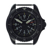 The matte black, non-reflective PVD finish used on this model is frequently specified in military contracts, particularly for special forces and anti-terrorist units involved in covert operations. In the PVD process, the steel is not black throughout. Instead, the color is created through a chemical PVD plating process, which is far superior to the painted finishes on lower-quality watches that can fade or wear off. This process alters the color of the steel at a molecular level, ensuring that it withstands heavy use. However, extreme damage, such as gouges from metal or continuous abrasion against rocks, can still affect the finish.